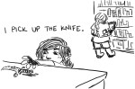 “I pick up the knife” is now a mini-meme among my party and obviously it just means “I did something impulsive and now it’s going to take two sessions to solve.”