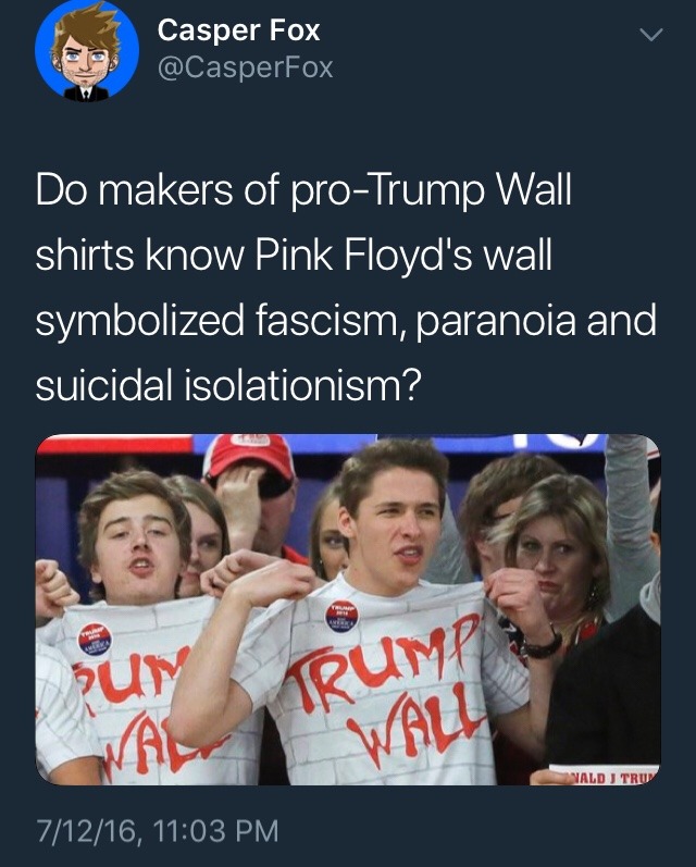 Mean while, Roger Waters, the guy that literally wrote the album The Wall is doing this at his concerts: